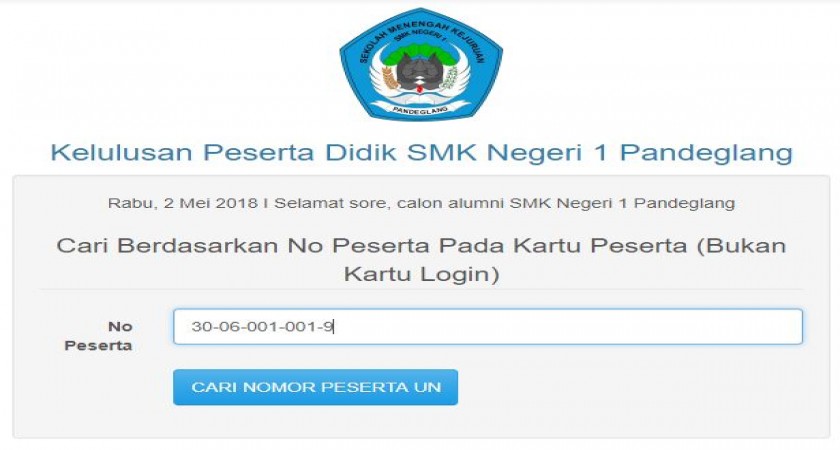 Sesuai kesepakatan juga pengumuman di sampaikan melalui laman https://kelulusan.smkn1pandeglang.sch.id dan relase pada tanggal 3 Mei 2018 pukul 19.00 WIB atau pukul 07 malam.