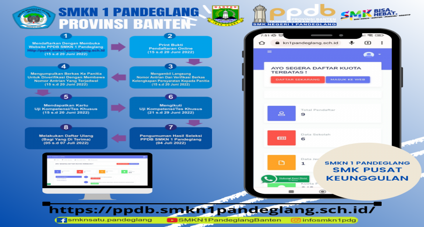 1. Membuka website PPDB : https://ppdb.smkn1pandeglang.sch.id (15 s,d 20 Juni 2022)